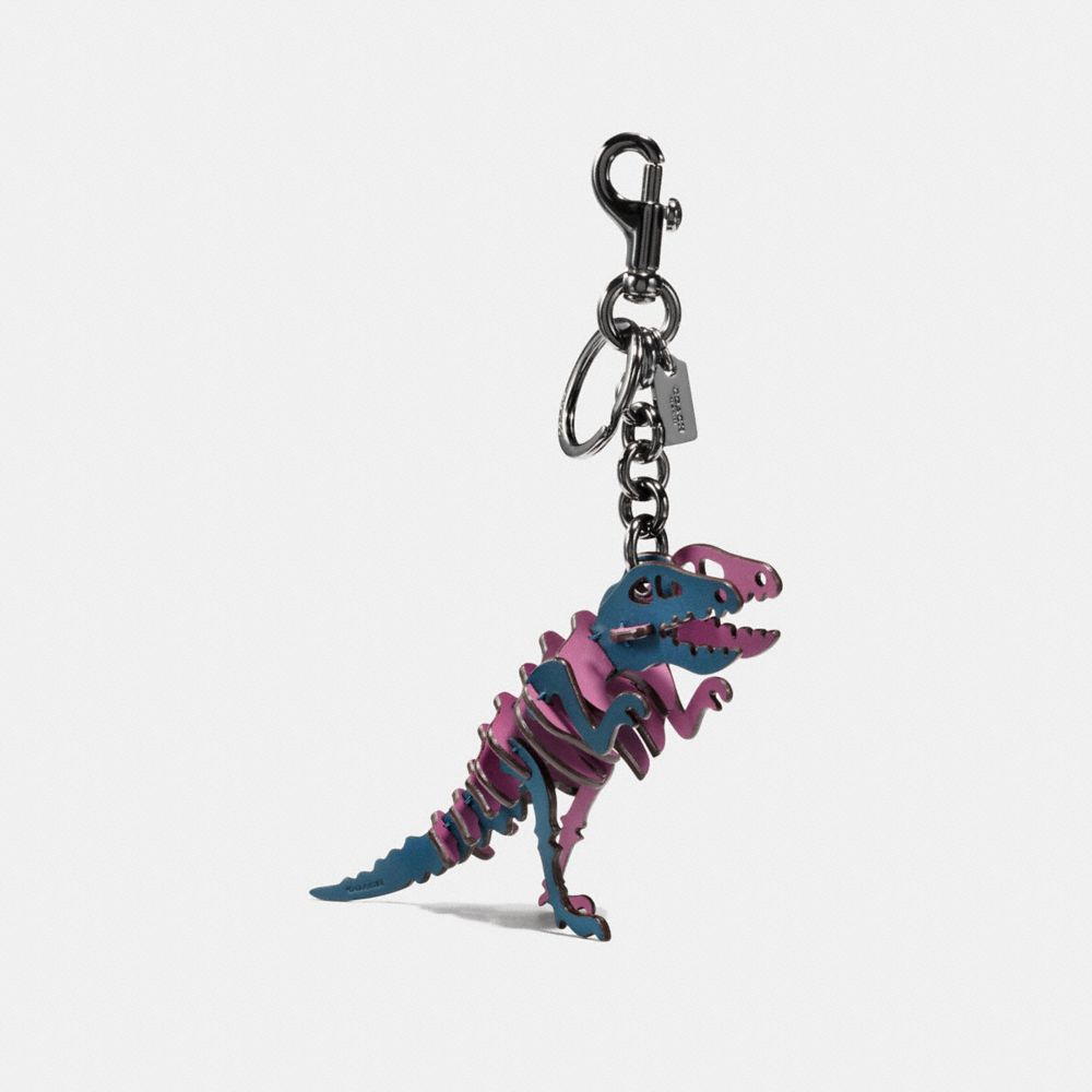 Rexy, the Coach dino, brings a rebellious attitude to a set of keys or a favorite bag. Crafted of Coach glovetanned leather, the charm is equipped with a key ring and a dogleash clip to attach to your bag or belt loop.