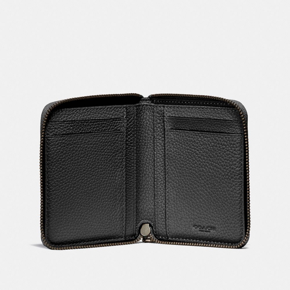 Crafted in pebble leather, this slender wallet is designed with four card slots, a bill compartment and a secure zip-around closure.