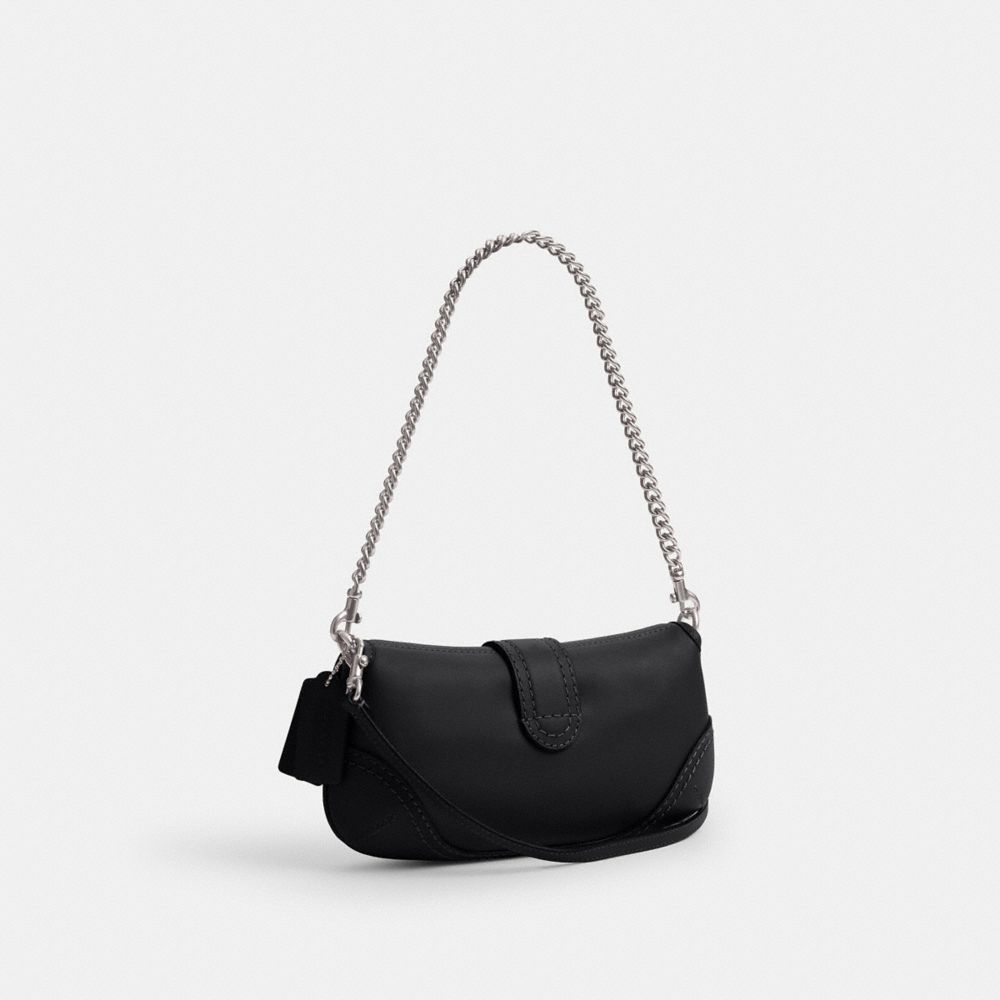 COACH®,Soho Bag 25,Leather,Shoulder Bag,Logo,Embossed,Adjustable,Gold Metal,Day Party,Black,Back View