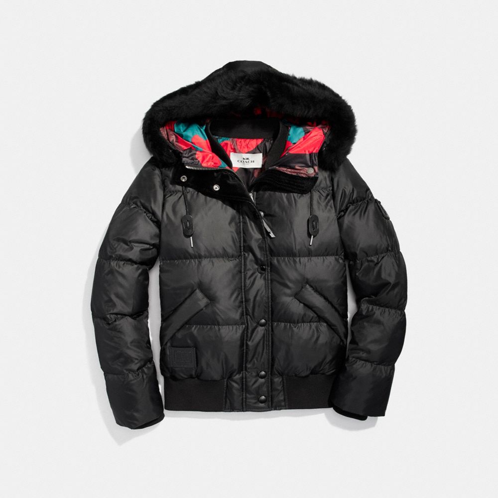 COACH®,Solid Camo Short Puffer With Shearling,,Front View