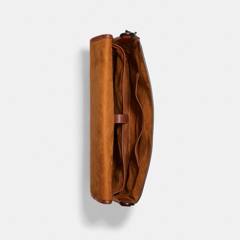 A timeless style that you’ll love (and wear) for years to come, this aptly named bag was dreamed up in the Coach Design Studio. Finished with an archive-inspired Signature push-lock closure, the spacious messenger is a convenient hands-free design crafted of our buttery soft glovetanned leather. With space for a 16” laptop, it keeps you organized with interior card slots and an exterior zip pocket for easy access to essentials. (Feels good to feel put-together, doesn’t it?)