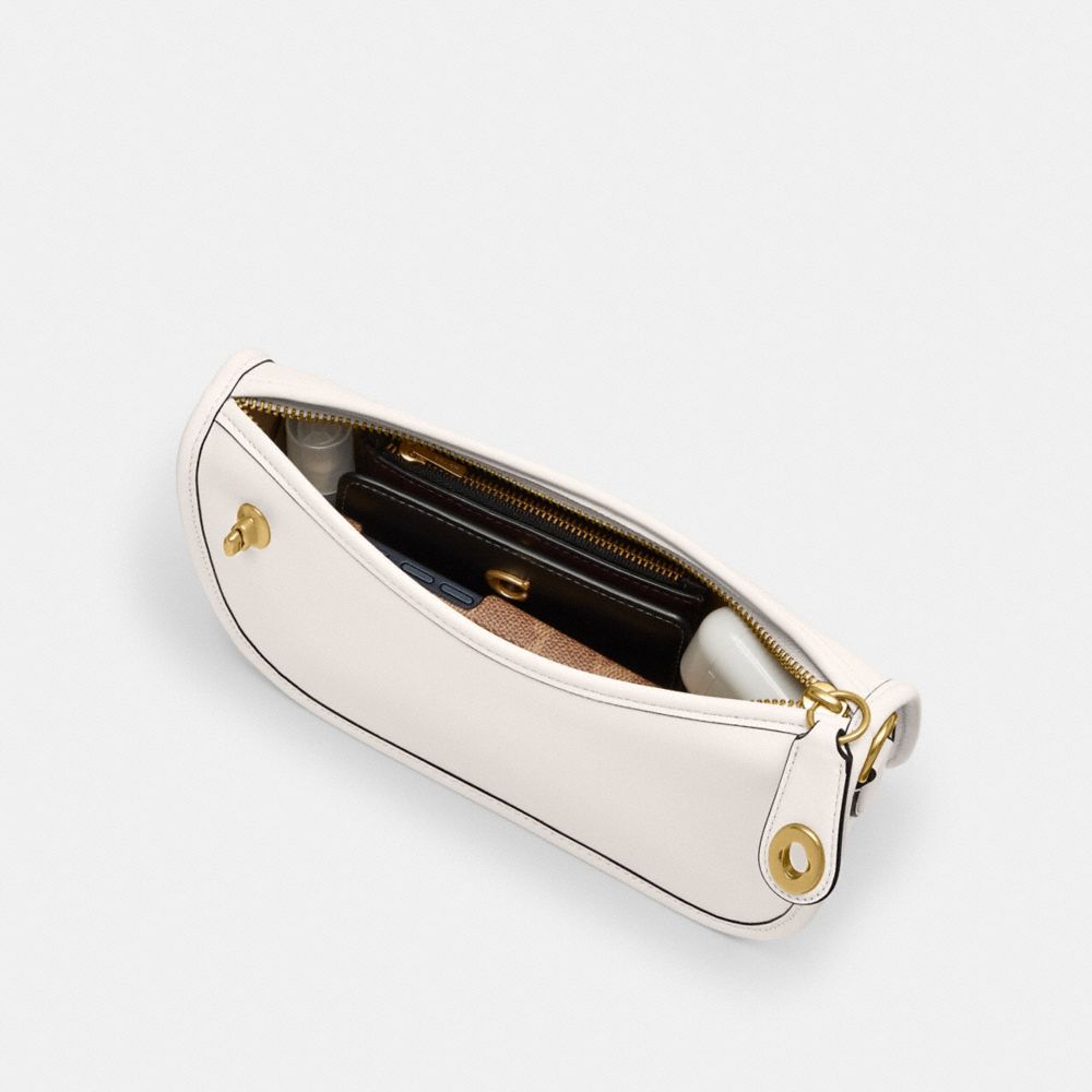 The Swinger Bag is part of The Coach Originals, a collection of archival-inspired bags that celebrates our legacy and authentic New York heritage. This streamlined buttery soft glovetanned leather style is based on a 1987 Coach design reimagined for today. Featuring our iconic turnlock closure and a chunky short chain strap, the zip-top shoulder bag sits just beneath the underarm for hands-free convenience and includes a detachable long strap to wear crossbody. Some styles are just too good to leave in the archives.