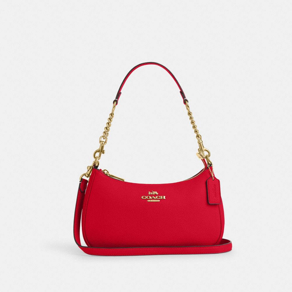 COACH®,Teri Shoulder Bag,Shoulder Bag,Chain Detail,Logo,Metal,Casual,Red,Front View