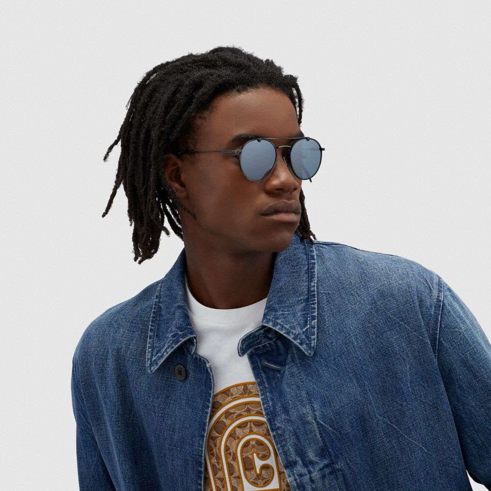 COACH®,Thin Metal Round Sunglasses,,Front View