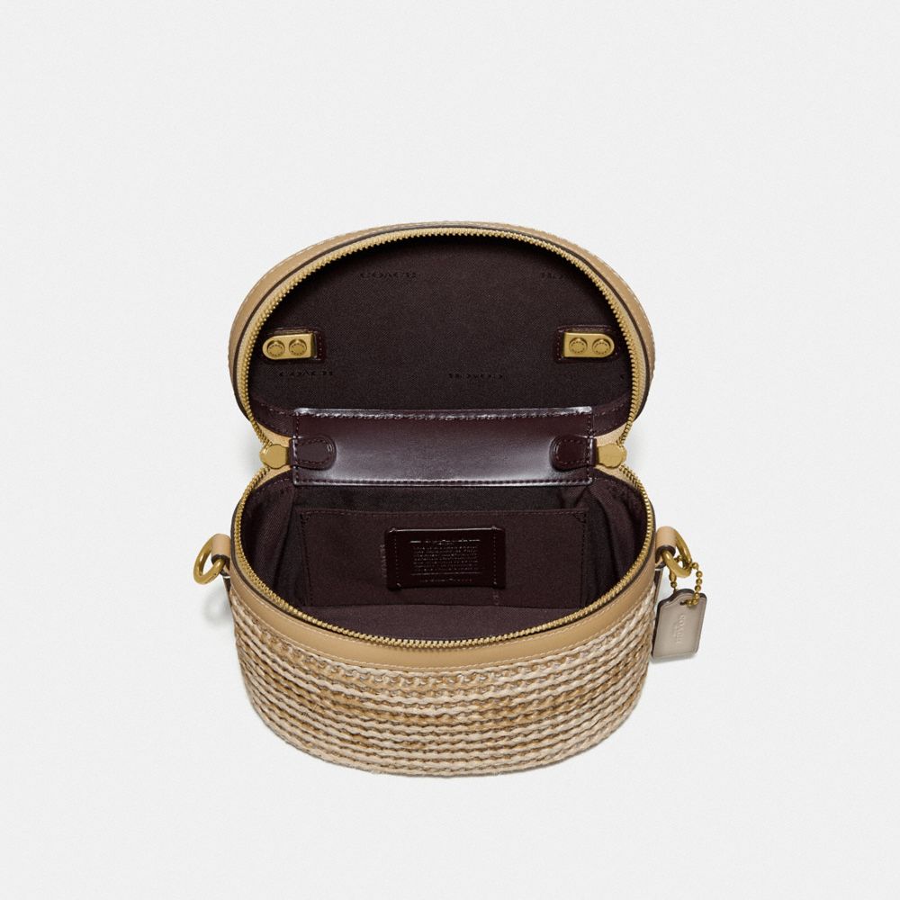 Based on an archival Coach design, the petite Trail Bag is crafted in refined leather and textural woven raffia. It’s finished with a ladylike top handle and convenient crossbody strap.