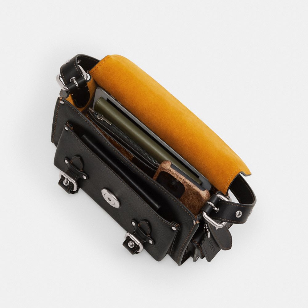 The Western Tabby reimagines our structured take on an archival 1970s Coach design with a slouchy relaxed feel. Finished with Western-inspired buckle accents, side cargo pockets detailed with our iconic turnlock closures and our Signature hardware, this natural grain leather shoulder bag features zip pockets inside and out to organize small accessories and two straps to carry by hand, style as a short shoulder bag or wear crossbody.