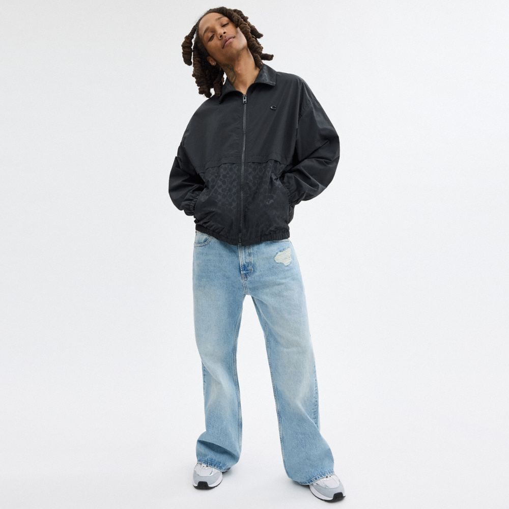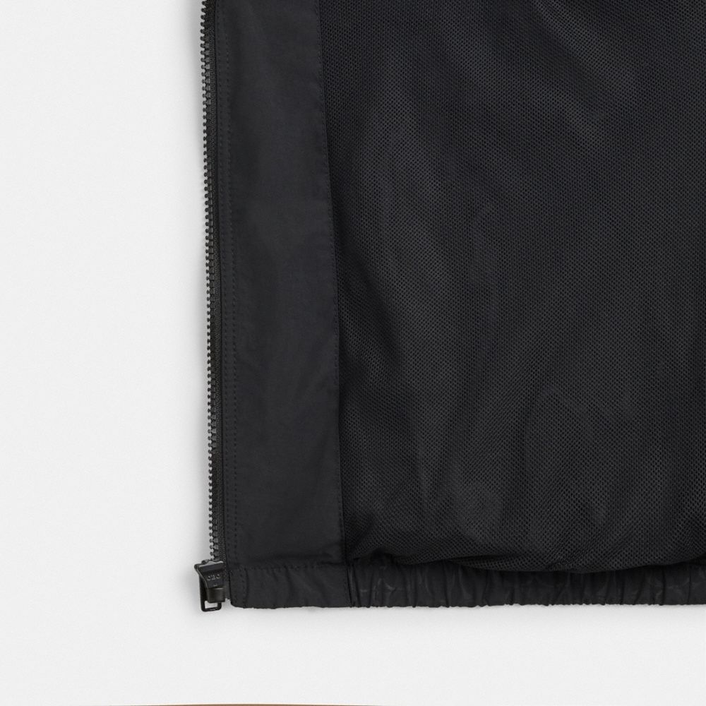 Finished with our tonal Signature, this lightweight, water-resistant windbreaker is a great transitional piece. Crafted of recycled materials inspired by our commitment to rethinking and reducing our impact on the planet, the zip-front style features a protective funnel collar and zip pockets to safely store small essentials.