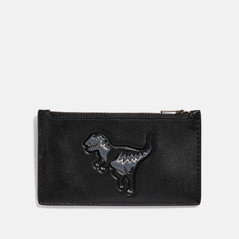 Featuring Rexy the Coach mascot, this refined leather case unzips to reveal an expandable pocket. A slim design that slips easily into pockets, it holds five cards and other small essentials.