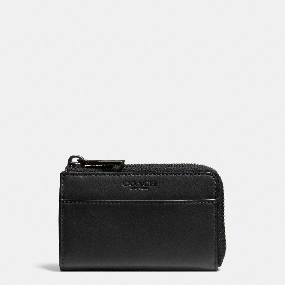 Carry keys, cards and coins in style with a graphic case crafted in durable leather that will burnish handsomely over time. The back pocket design zips open to reveal a detachable D-ring keychain; a slip pocket on the front allows instant access to a transit card or ID.